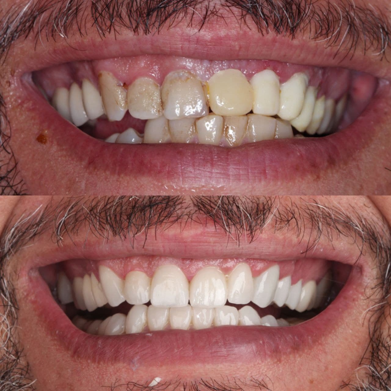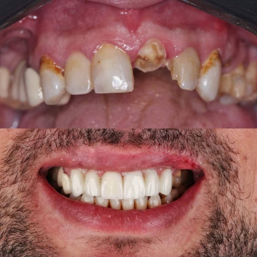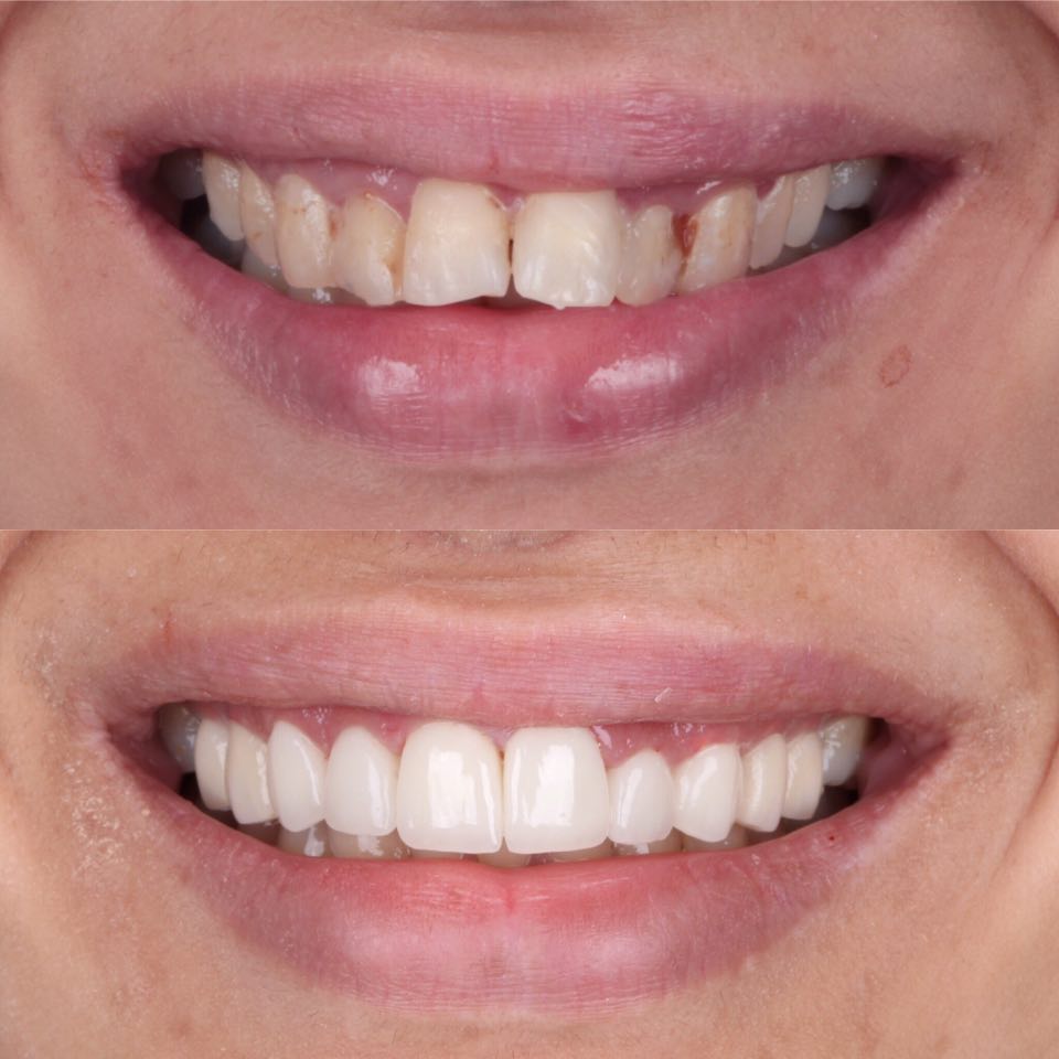 Bridges are used for replacing a missing tooth or pair of teeth. They require a healthy natural tooth on either end for support. But in the instance of 3-4 missing teeth, the ceramic bridge can be supported by a pair of dental implants